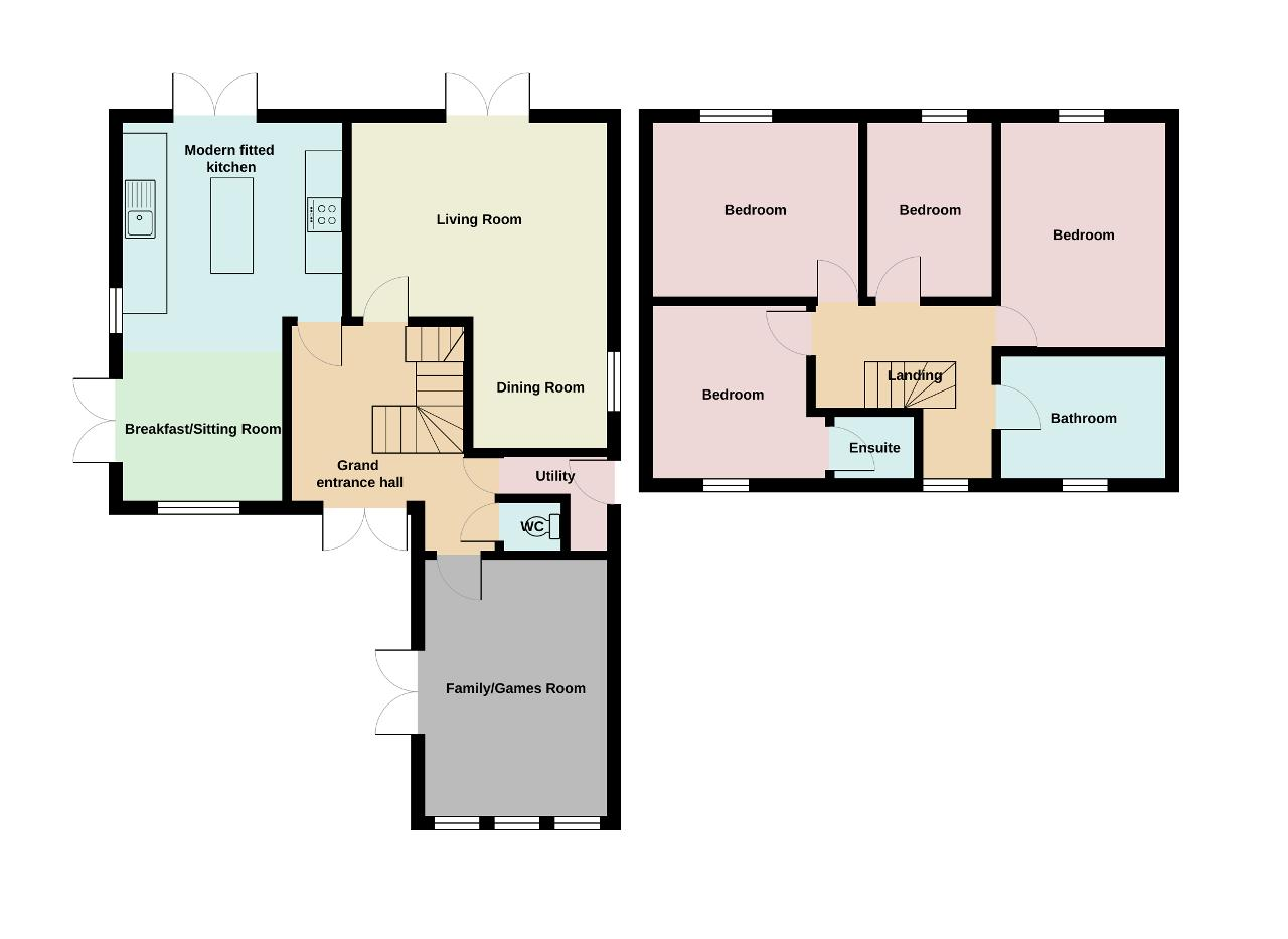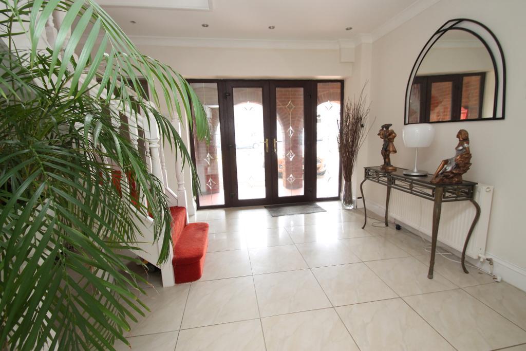 Upstairs, you'll find a grand landing area leading to the four double bedrooms, with the master bedroom boasting an en-suite space ready for your personal specifications. Outside, the property is set on a large plot with a flat grassed rear garden and a large front garden with ample parking space for multiple vehicles.